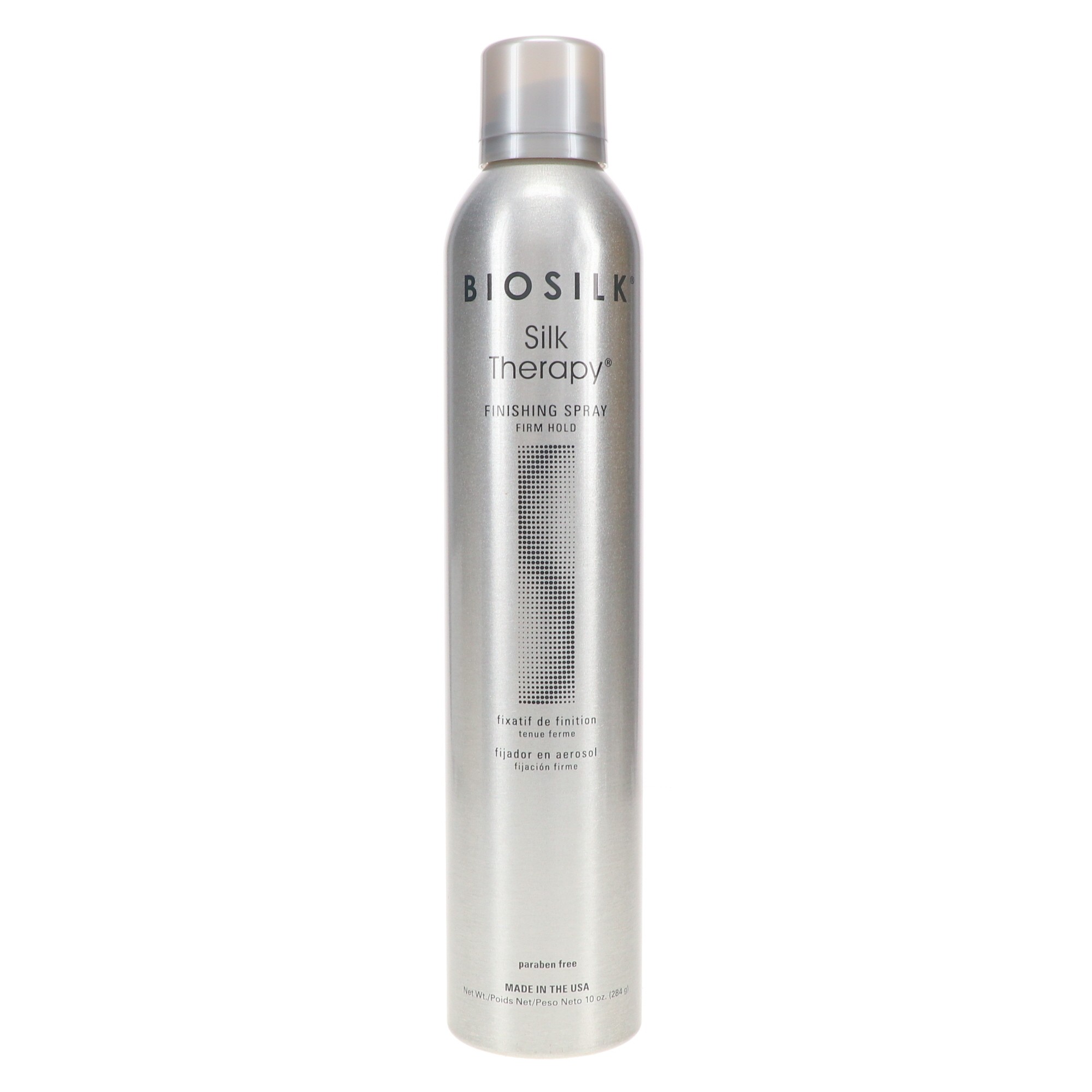 Biosilk Silk Therapy Finishing Spray, Firm Hold provides all-day support without creating buildup in your hair. This finishing spray uses silk proteins and botanical extracts to provide you the control you want without weighing your hair down. It dries fast and brushes out easily at the end of the day. Paraben-free and made in the USA, this finishing spray adds shine to your hair all day long.