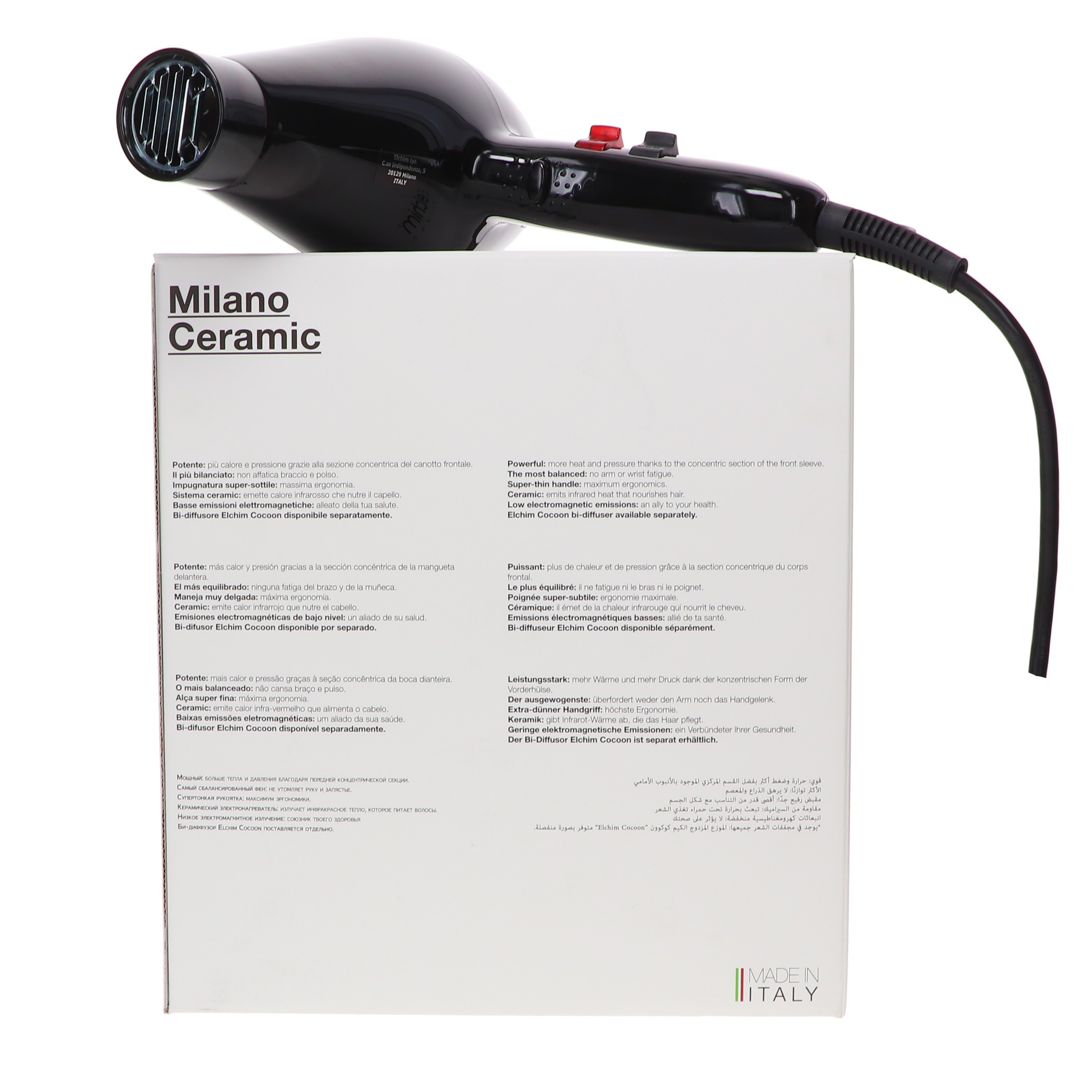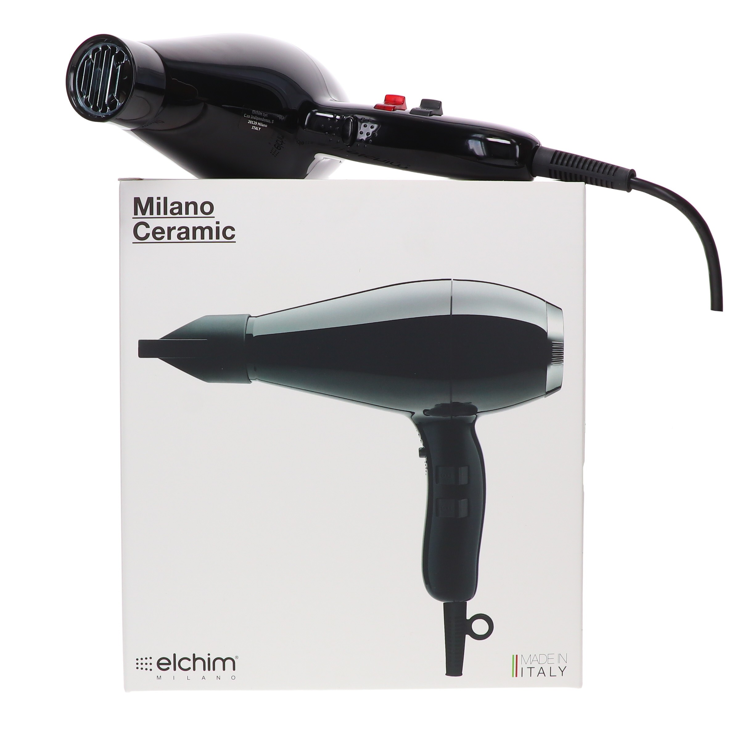 Looking for a high-quality hair dryer that will take your style to the next level? Look no further than the Elchim Milano Ceramic Black & Silver. This top-of-the-line hair dryer features narrow front section to increase heat, ceramic technology to ensure healthy drying hair from inside out, direct grip filter for an easier cleaning, cold air shot, lateral integrated double-action “pull-press” buttons, and super slim handle for major comfort. So why wait? Order your Elchim Milano Ceramic Black & Silver today!